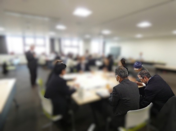当⽇は、県内各地から保護司委嘱後8年~12年の経験を有し、地区保護司会の組織運営で中⼼的な役割を果たしている保護司25名が出席。本研修立ち上げ経緯等を含む研修の意義等に関する連合会事務局による講義の後、横浜市港南区及び同緑区の両保護司会長が講師となって、両地区の保護司会運営状況について発表がなされ、その上で、「じゃあどうする?DOする?」というテーマにより、グループ「ミッション」活動(班別協議)が行われました。