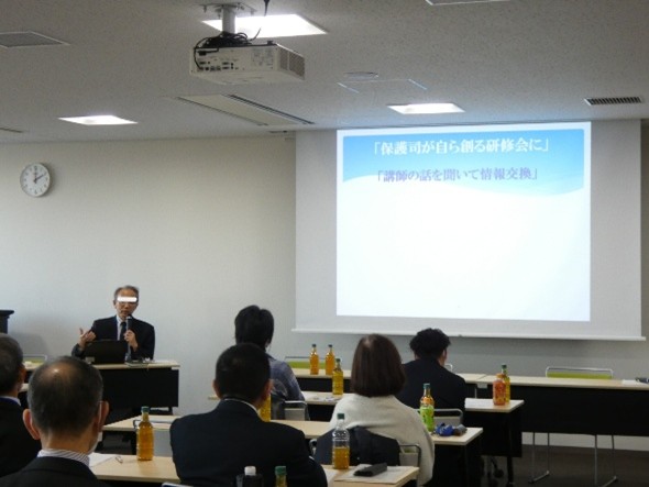 この研修では、神奈川県保護司会連合会事務局長が、官民を通じ40余年となる更生保護の活動を踏まえ、私見を交えながら、保護司・更生保護の活動にとって変わらないもの・大切なものと、変化したもの・在るべき対応について講義を行い、研修後は、横浜市保護司会協議会として直面する課題について話し合いました。