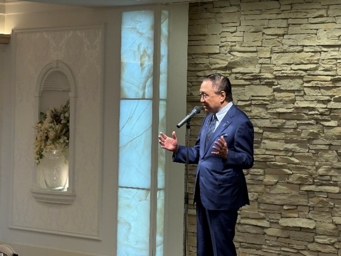 続いて、主催者・栁川義信連合会長による挨拶、ご来賓を代表しては、高橋栄一郎かながわ議員保護司懇話会会長、中臣裕之横浜保護観察所長、そして、此度、故斎藤文夫先生の後任として新たに就任された山口信郎神奈川県更生保護協会理事長・神奈川県就労支援事業者機構会長のお三方からご祝辞をいただき、ご臨席の来賓、昨年勇退された前保護司会長、令和6年中の栄典(定例叙勲・褒章)受章者、さらに、連合会幹部の紹介と続いて、有田連合会参与(元福岡高検検事長)の発声により一同高らかに唱和して祝杯をあげました。